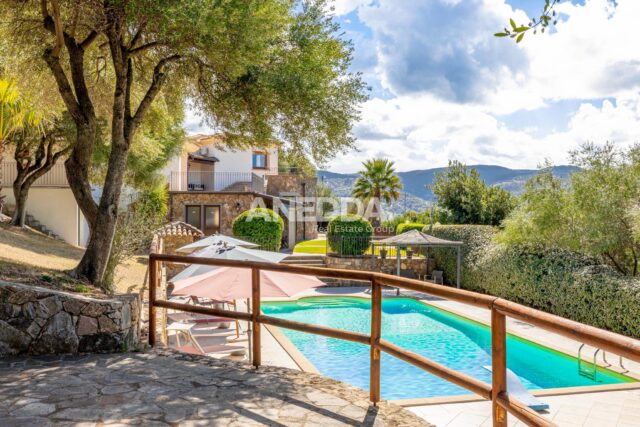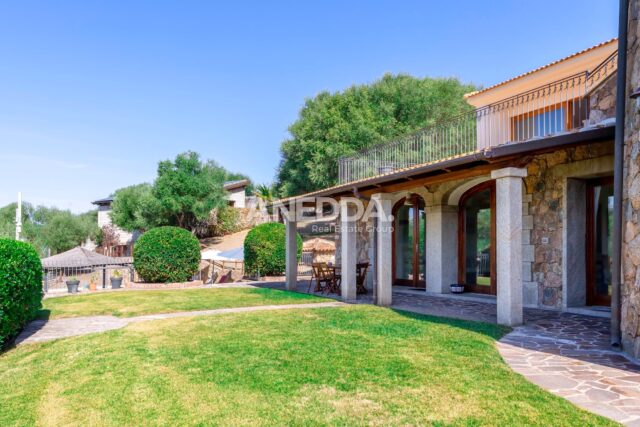 Realizzata con pietre e rocce a vista secondo i più autentici tratti dell’architettura gallurese, questa villa di pregio (500 mq) sorge immersa in un parco privato di 2.300 mq con giardino all’inglese e ulteriore terreno agricolo di 27.000 mq.
