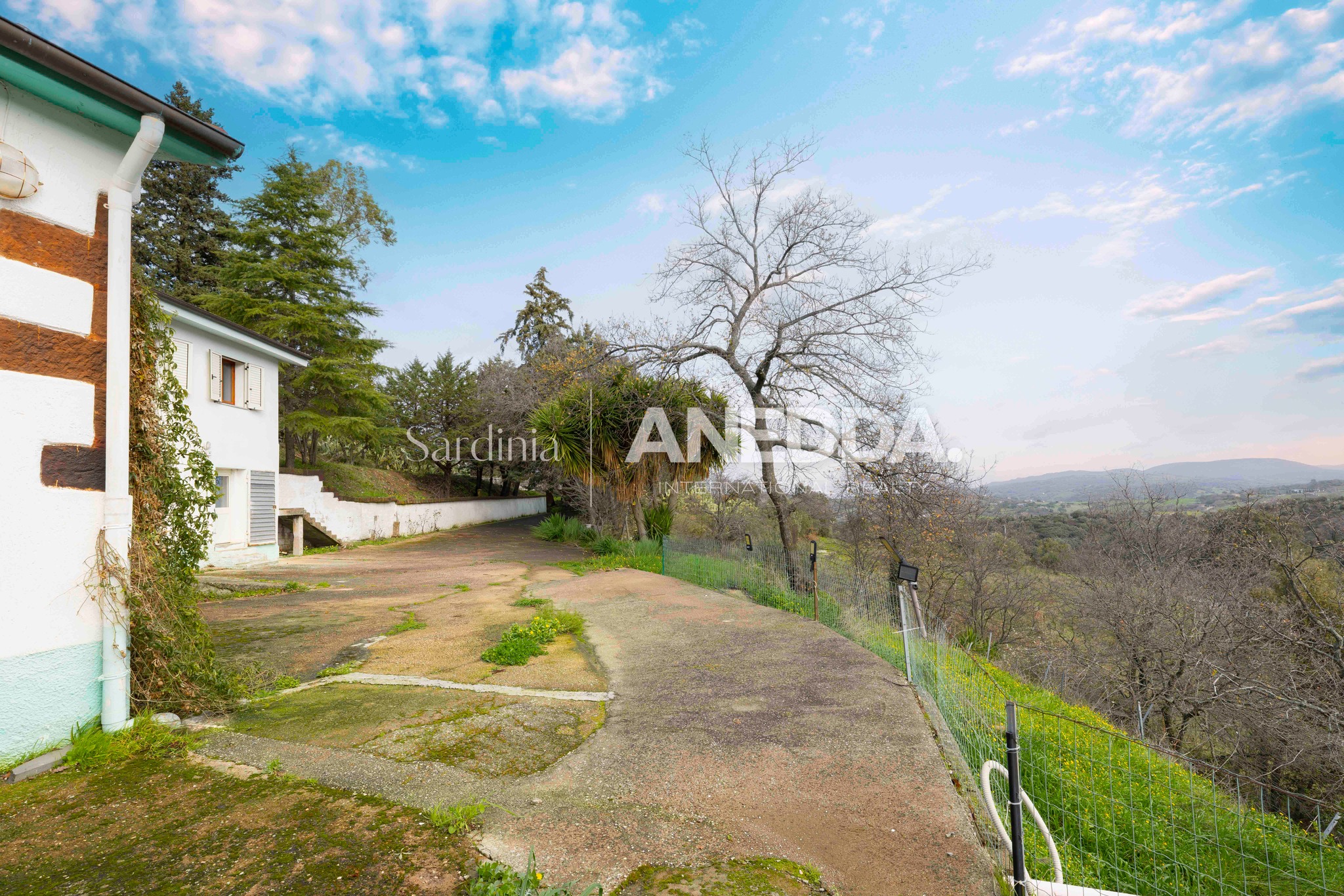 L’accesso a Villa Bianca avviene tramite strada comunale asfaltata fino all’ingresso della proprietà. Un elegante viale alberato accompagna verso la parte alta del fondo, dove i fabbricati sono stati realizzati in posizione panoramica e dominante. Qui lo sguardo si apre sul paesaggio circostante e la privacy è reale.